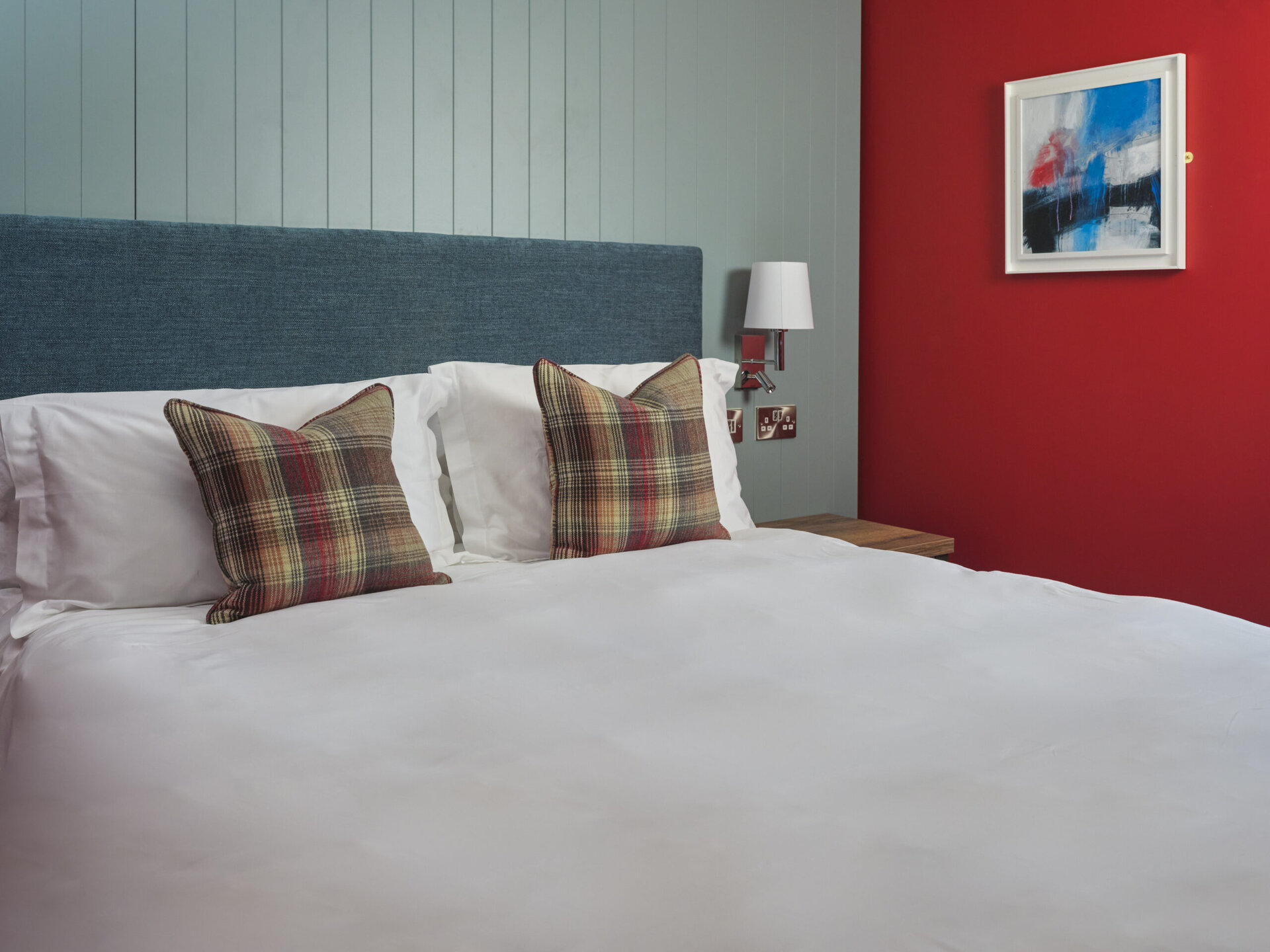 Features statement red feature wall, custom teal panelling and a sumptuous double bed dressed in fine linens. Includes a cozy seating nook and en-suite bathroom with classic Burlington fixtures. Ideal for couples or solo travellers seeking a characterful hideaway.